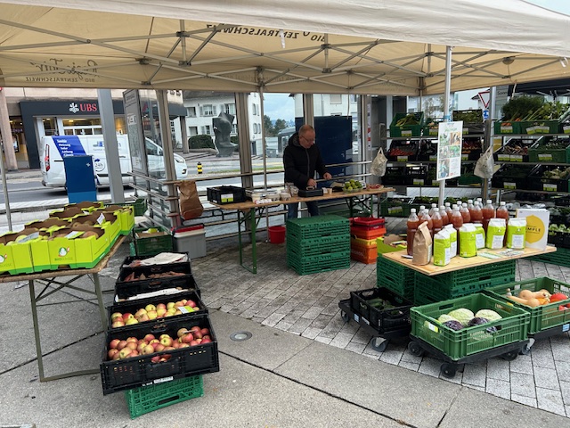 Der Emmenmarkt beim Sonnenplatz ist klein und fein mit rund einem halben Dutzend Ständen. Das Angebot verändert sich von Woche zu Woche etwas. Zu kaufen gibt es unter anderem Fleisch, feine Backwaren, frisch gerösteten Kaffee zum sofort Geniessen und zum Mitnehmen, Blumen, Gemüse und Obst. Auch handwerklich tätige Produzent*innen präsentieren ihre Produkte.